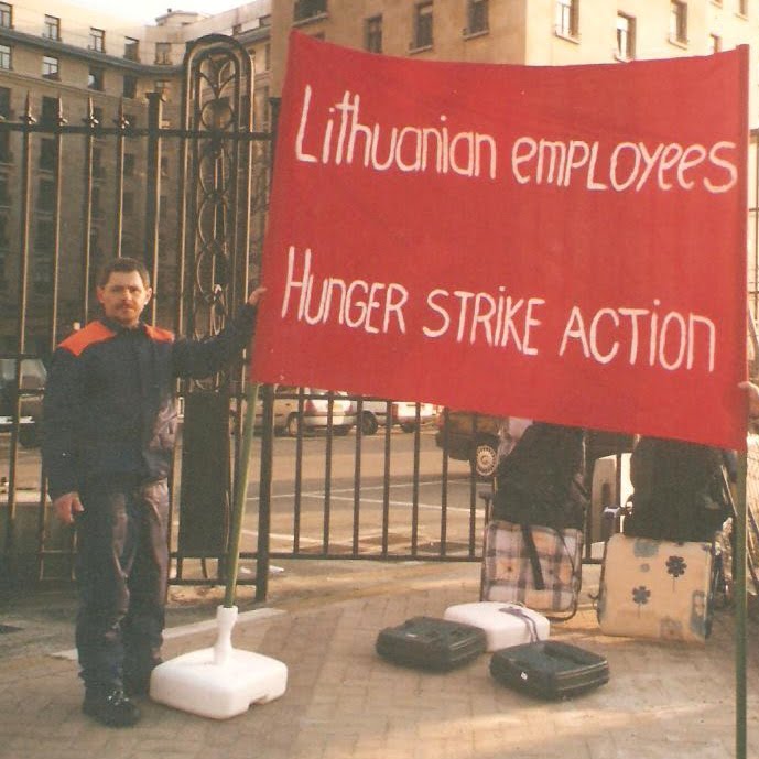 Mes dviese, su neteisėtai atleistu iš darbo už priklausymą profsąjungai, Lietuvos geležinkelio traukinio mašinistu Leonidu Malomūžu, atsivežėme į Briuselį specialias specialias kėdes, didelius pastatomus lietsargius ir pradėjome bado akciją, dalindami visiems įeinantiems į Europarlamentą ir prie jo vaikščiojantiems žmonės informacinius lapelius, kodėl mes čia esam ir ko siekiam.
